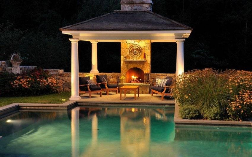Если на вашем загородном участке есть великолепный сад или искусственно созданный водоём, то беседку с мангалом лучше возвести там. Помимо великолепного вида из неё, от водоёма в знойный день будет веять прохладой. При планировании места для беседки учитывайте, как будут располагаться лавочки или скамейки. Не стоит располагать её на открытом солнце. Лучше, когда она вся или хотя бы половина, будет располагаться в затенённом месте.