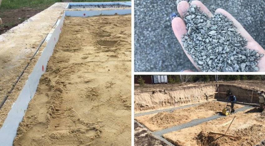 Неотъемлемой частью при формировании основы есть создание фундаментной подушки между землёй и основанием. Для создания таких подушек используют такие материалы: