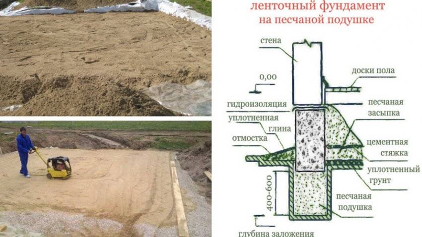 В качестве самого бюджетного варианта для создания фундаментной подушки используют песок.