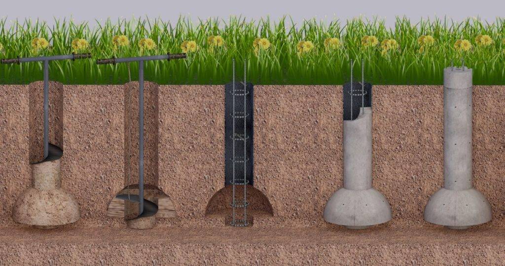 Вариантов сооружения столбов два – связать с помощью ростверка, который распределит тяжесть конструкции по всему периметру или оставить их в начальном положении.