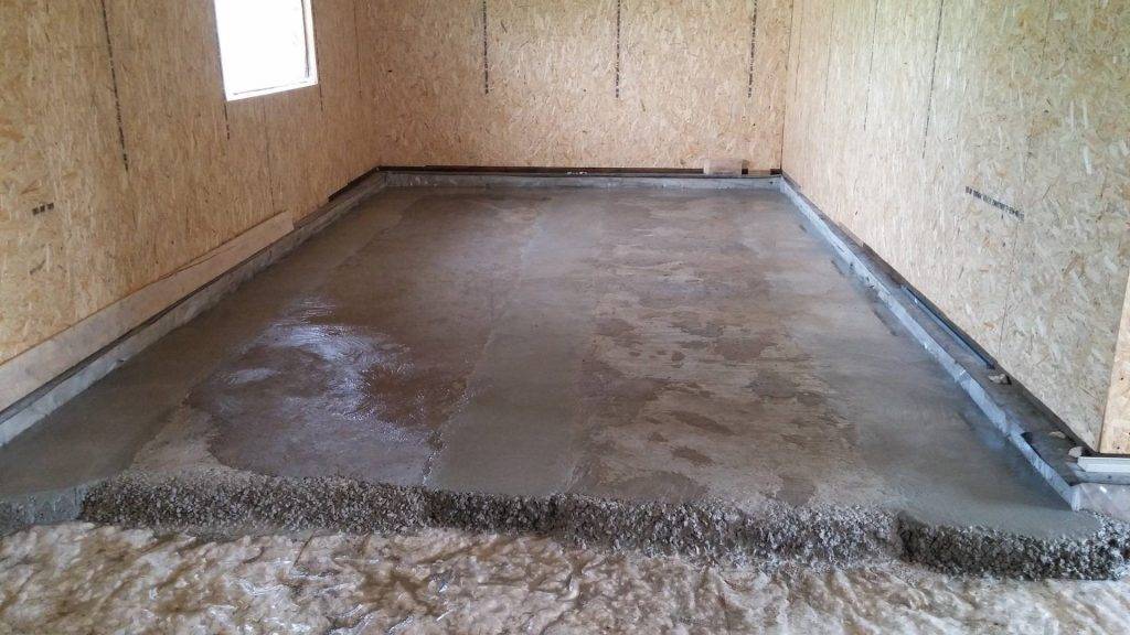 - Укладка бетона производится равномерно, начиная от угла комнаты к выходу.