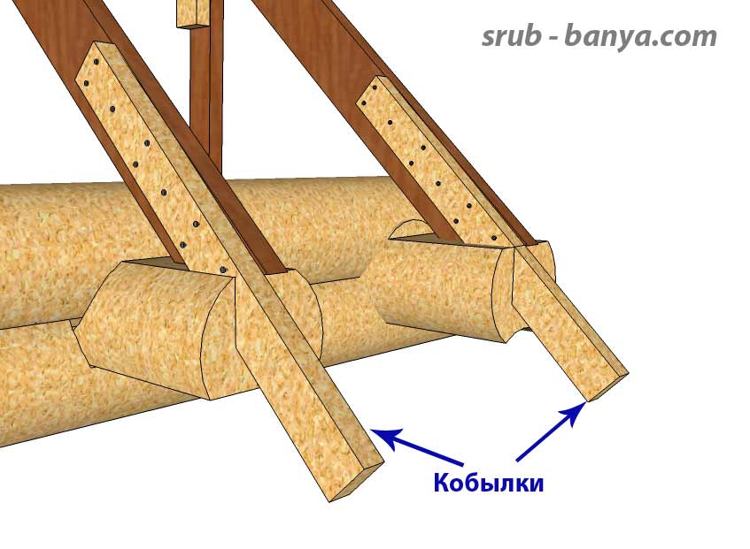 Кобылки. Кобылка прибивается к стропильной ноге гвоздями 100мм. |