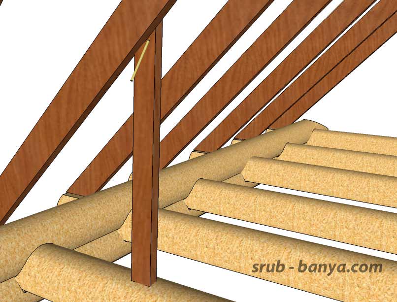 - Стойки — брусья квадратного сечения, передающие часть нагрузки от стропил на лежни.