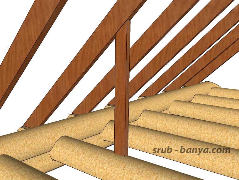 Стойки крепятся при небольшой длине пролета — по центру, по бокам и центру — при более широком основании крыши. Крепление производится вертикально от конька к внутренней стене.
