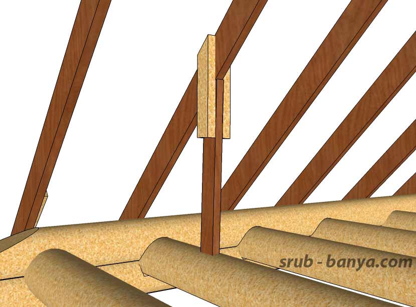 При необходимости (если предусмотрено проектом) делается пропил в стропильных балках для крепления коньковой балки (прогона).