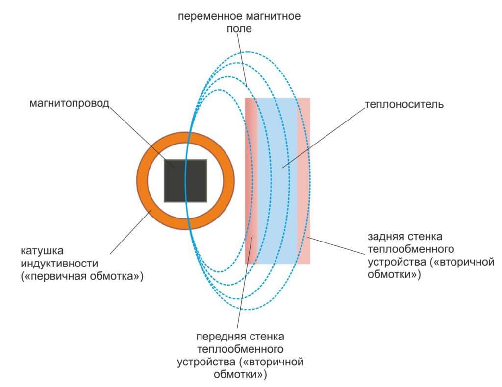 Каждый технарь знает тот факт, что все, что попадает в магнитное поле имеет свойство нагреваться. Индукционный котел – это большая катушка, по которой проходит ток, а вода внутри катушки, проходя через нее, нагревается.