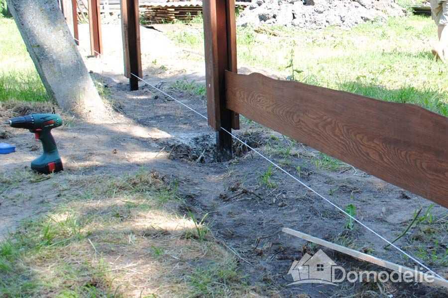 До начала работ, нужно предпринять шаги и произвести расчеты, чтобы забор был прочный. Для деревянных столбов метод бетонирования не подходит, вероятно, что сгниет быстро. Для прочности требуется подбирать столбы со стальным основанием.