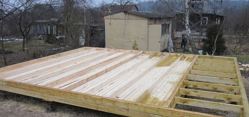 Заранее подготовленный фундамент обвязывают обвязочной доской или брусом (как это сделать правильно, читайте здесь), и первоначально ставится пол.