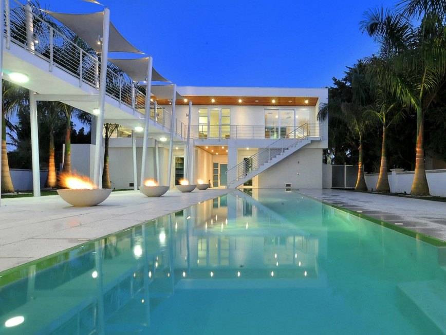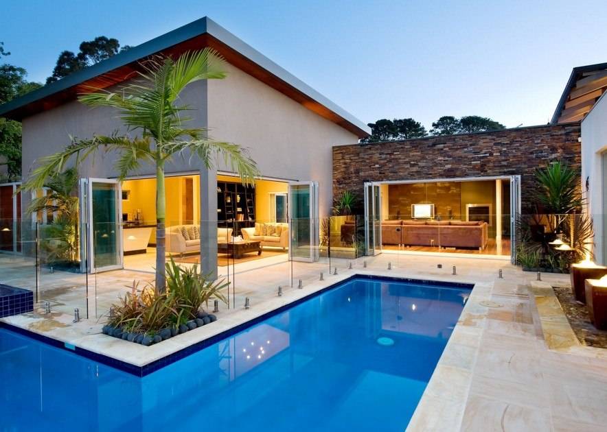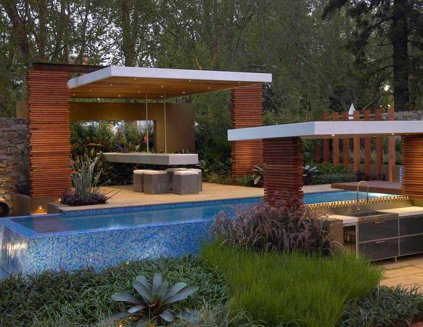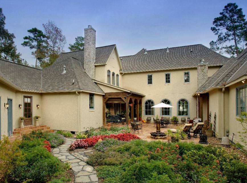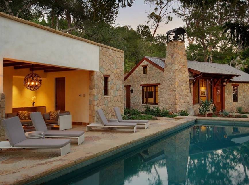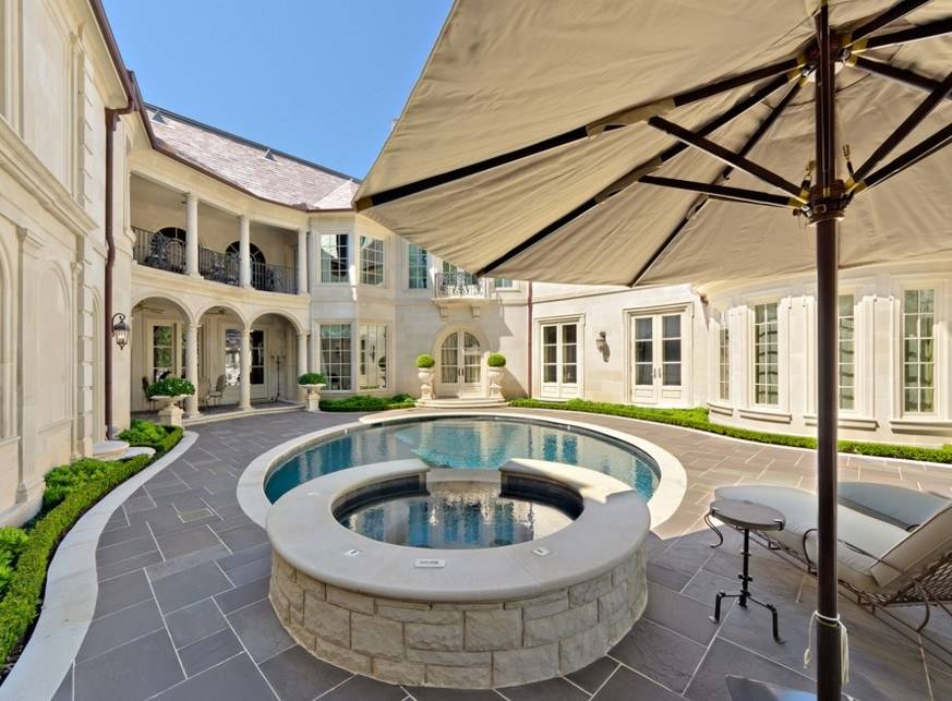 Что касается архитектурных элементов, то и их здесь хватает. Во внутренней части обустраивают дворик патио, территорию украшают арками, террасами и живыми изгородями, и, конечно же, фонтанами.