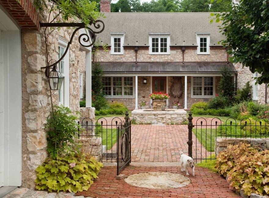Дорожки, что располагаются максимально близко к дому, должны иметь строгий стиль, лучше всего выкладывать их из брусчатки. Если же этот вариант не устраивает, то можно использовать кирпич (как белый, так и красный) или же бетон. На других участках, например, возле зоны отдыха или ближе к искусственному водоему можно применить материал с неправильными формами, что будет иметь разные габариты. Также можно не останавливаться на одном конкретном материале, а сделать их комбинацию, что также будет эффектно выглядеть. При укладке дорожек главное ориентироваться на стиль фасада таким образом, чтобы все гармонично сочеталось между собой и создавало единую картину.