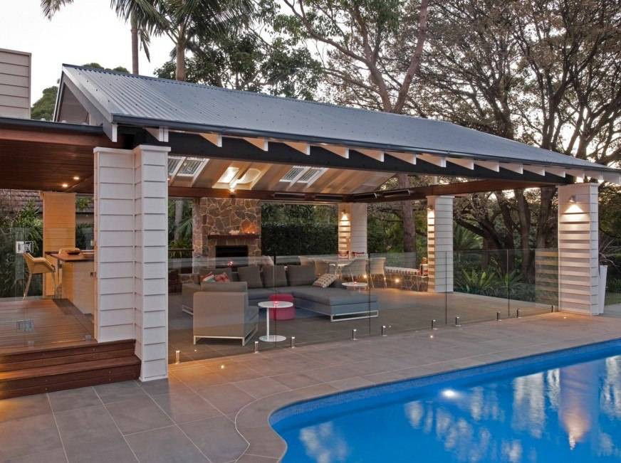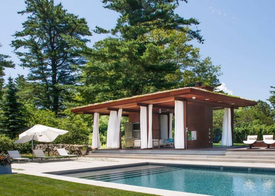 Отдельные проекты могут разрабатываться для приготовления шашлыка и других блюд на огне. В таких случаях уместными будут встроенные печка, барбекю, мангал.