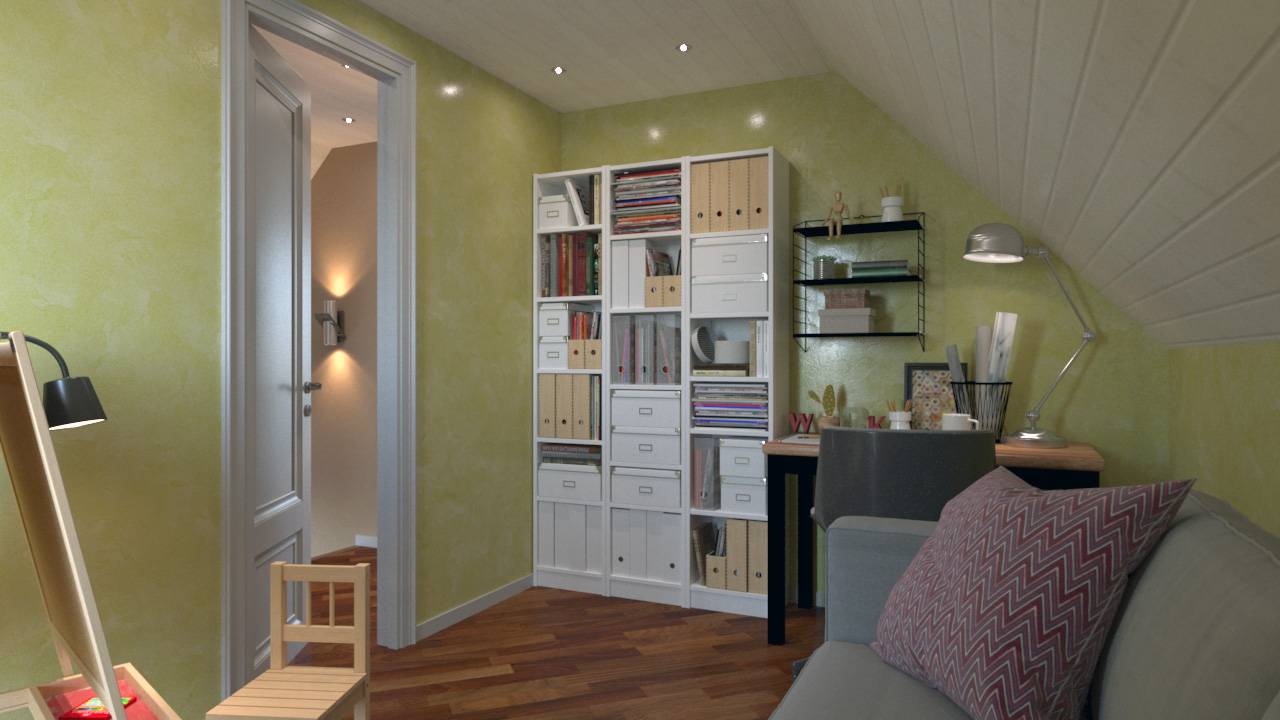 При этом он неплохо освещен окном на лестнице или мансардным окном в крыше (в одной из вариаций проекта с гаражом).