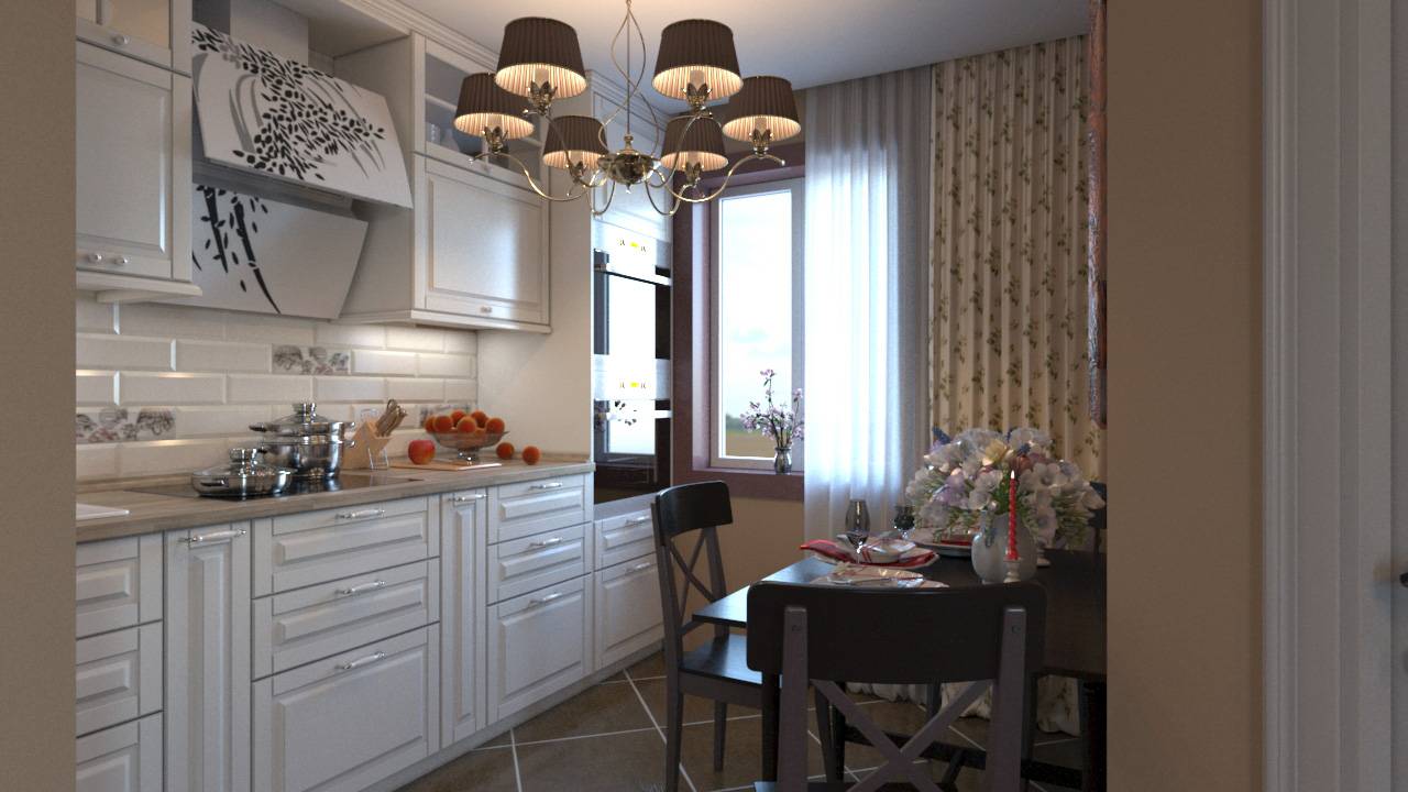 Вот так может выглядеть кухня. Она невелика, но места достаточно для обустройства кухонного гарнитура и комфортного принятия пищи за обеденным столом. Естественный свет из окошка освещает кухню так, что можно не тратиться лишний раз на электрическое освещение.