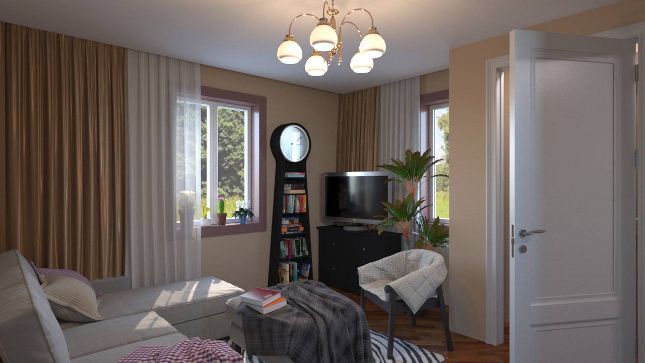 Виды гостиной «Оптимы». Из тамбура: поскольку здесь гость только появляется в доме, перед ним сразу предстает закономерная картинка уютной гостевой комнаты, где можно присесть с дороги, отдохнуть и пообщаться с хозяевами этого милого домика. Всё, что нужно — и ничего лишнего.