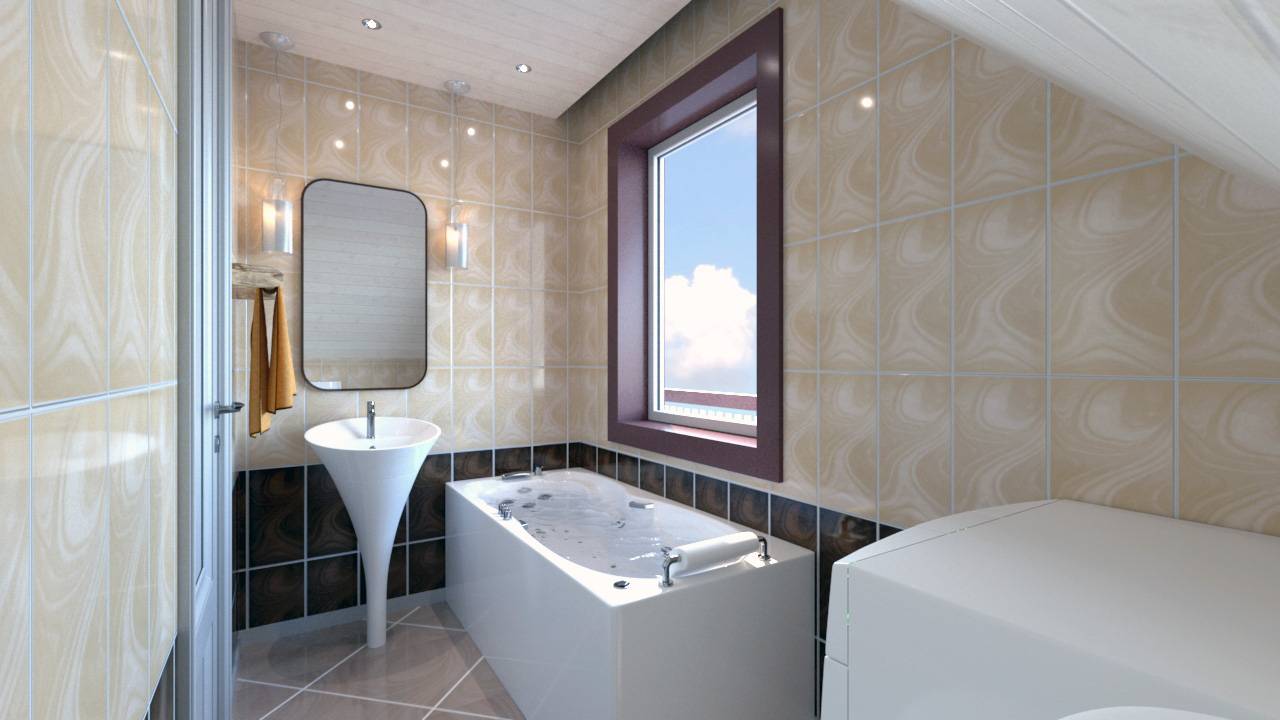 Обратите внимание, какая светлая получилась комната — она поистине является украшением дома! При этом здесь может спокойно помыться как ребенок, так и рослый мужчина