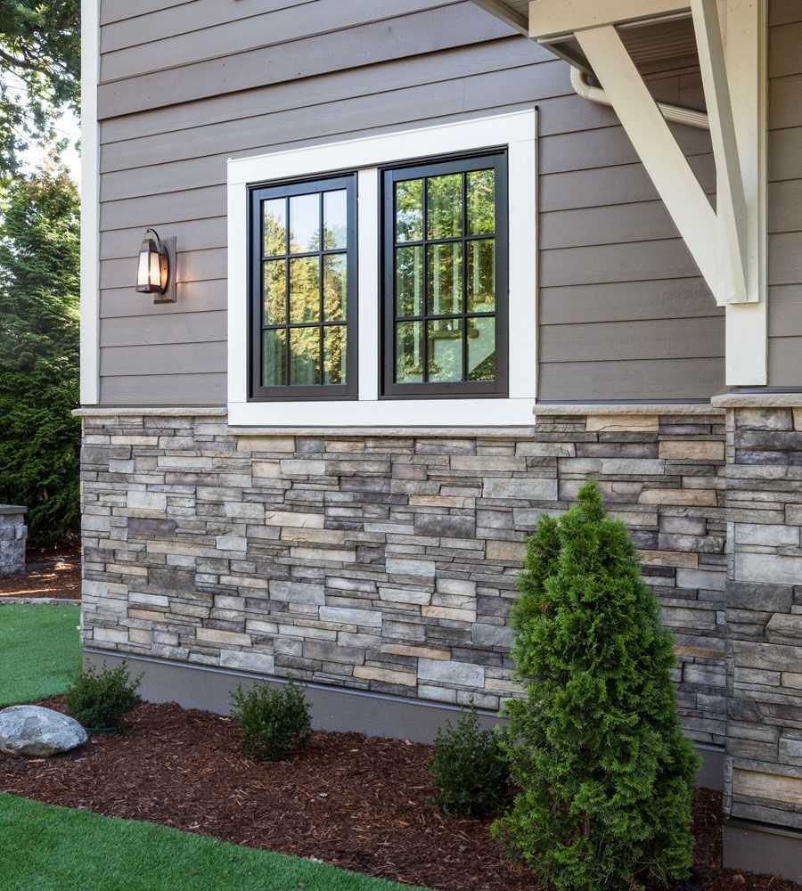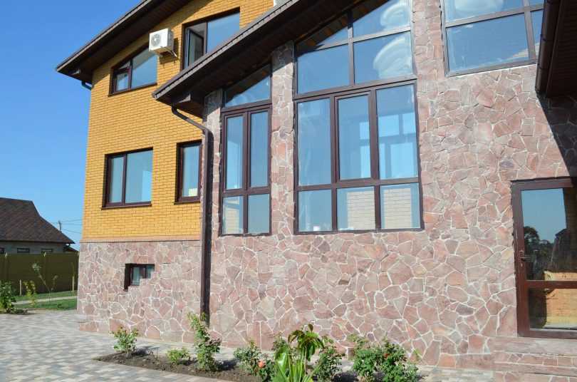 Этот вид облицовки не претендует на исключительный природный вид и укладывается как облицовочный декор. Чаще всего его можно встретить на угловых и цокольных оформлениях. Нередко можно встретить такую кладку и как декорирование окон и дверей. Хоть данный камень для отделки фасадов имеет правильную и ровную форму – прямоугольник или квадрат, укладывать их тяжело. Нюанс состоит в следующем: по незнанию сразу используются плиты в форме квадрата или прямоугольника, однако их следует распределить равномерно по всем стенам, которые нужно облицевать.