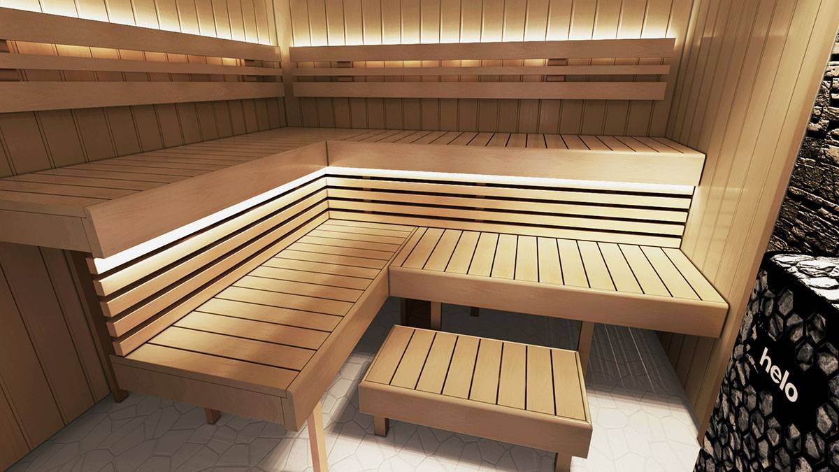 Другой характерный признак саунного полка в бане: каркас зашивается по высоте вагонкой. Это делается потому, что финнам не надо оставлять пространство для свободной постановки ног парящего – его ступни носками немного заходят внутрь, под полок, при этом достигается то самое правильное вертикальное положение корпуса парящего.