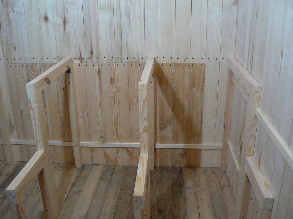 В местах, где деревянный каркас полков контактирует с напольной поверхностью, монтируются специальные резиновые прокладки для дополнительной гидроизоляции.