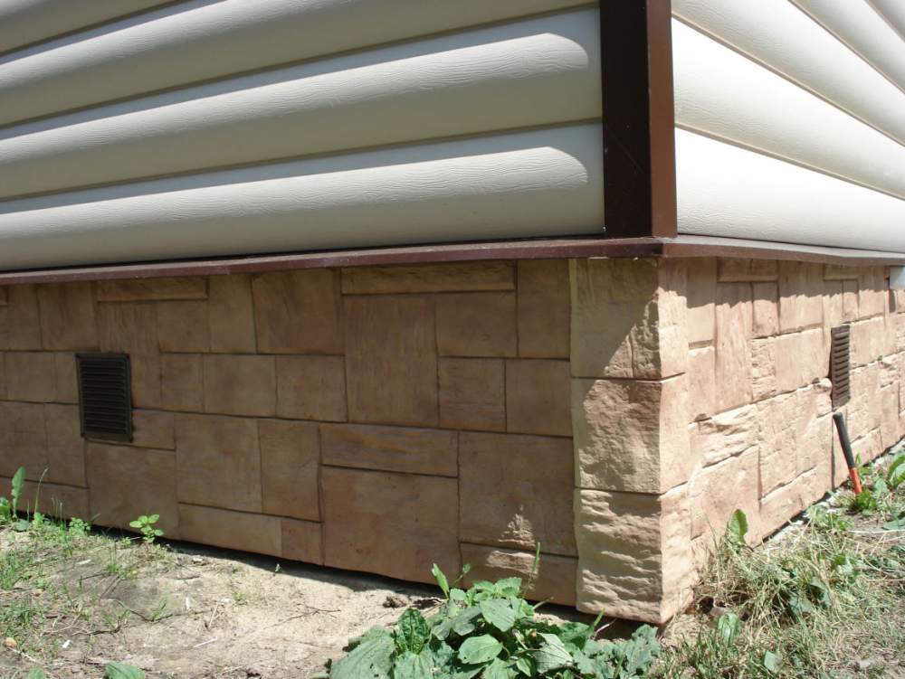 В данном случае это очень удобно, как в плане расчётов, так и в плане монтажа, ведь достаточно просто подогнать по высоте один сегмент, закрепить его и отделка цоколя готова.