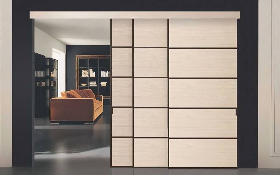 Кассетная раздвижная межкомнатная дверь: полотно прячется в стенную нишу