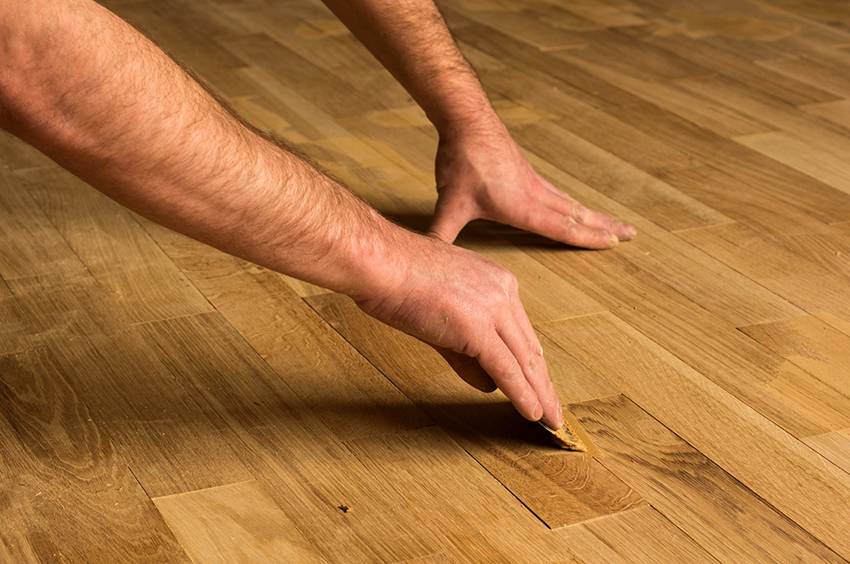 На заметку! При появлении крупных щелей в первую очередь необходимо стянуть планки, а в свободное пространство заложить деревянную заготовку, которой будет достаточно, чтобы закрыть щель. Если щелей много, лучше полностью поднять покрытие и уложить его заново. Нужно быть готовым к тому, что часть планок потребуется заменить. Локальная реставрация паркета будет стоить намного дешевле капитального ремонта.
