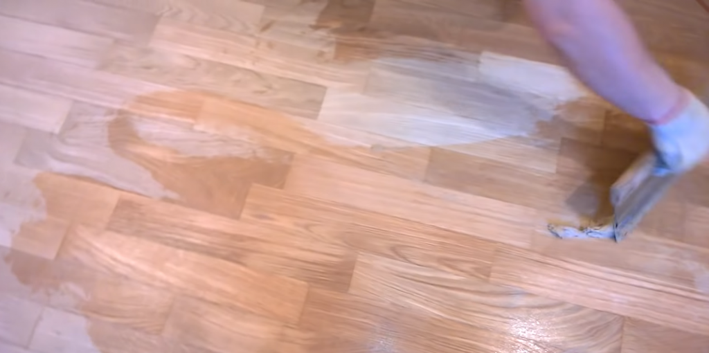 - Поверхность равномерно обрабатывается морилкой. Но только в том случае, если есть желание изменить цвет паркетного пола.