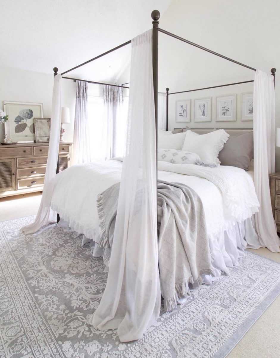 В комнате небольшого размера, для зонирования можно использовать балдахин или навесные текстильные полотна.
