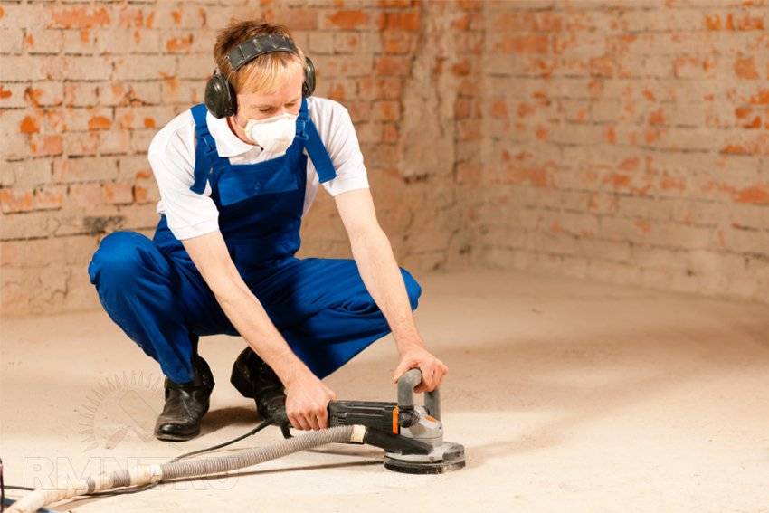 - Подготовка основания. Слишком большие неровности — впадины или выступы — убирают. Это позволит минимизировать расходы, так как минимальная толщина слоя определяется по самой выступающей точке.