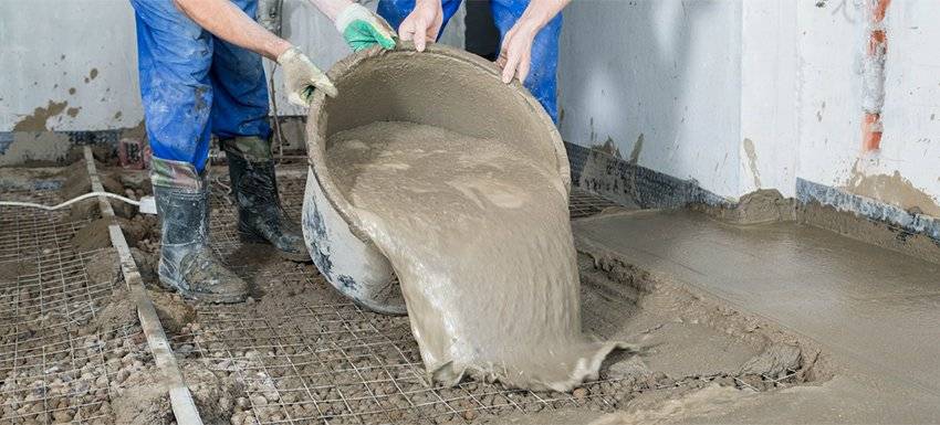 Речь идет о порядке действий при заливке бетонного раствора. Это может быть любой батон — от тяжелого, до легкого. Может быть и полусухая стяжка — раствор с минимальным количеством воды.