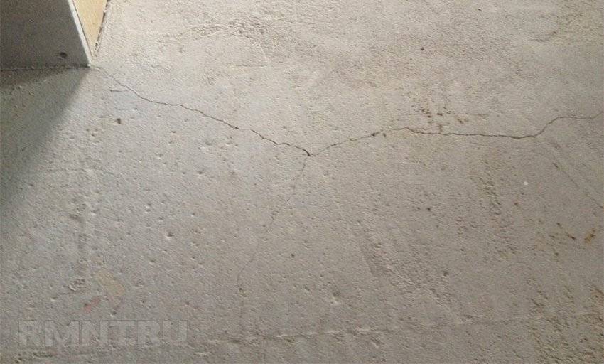 Также следует помнить о том, что если в основании имеются трещины, то, скорее всего, после установки связанной стяжки, они появятся и в новом покрытии. Поэтому следует избавиться от всех дефектов заранее, чтобы потом не переделывать. Например, глубокие дыры в основании лучше всего отдельно залить цементом с проложенной арматурой.