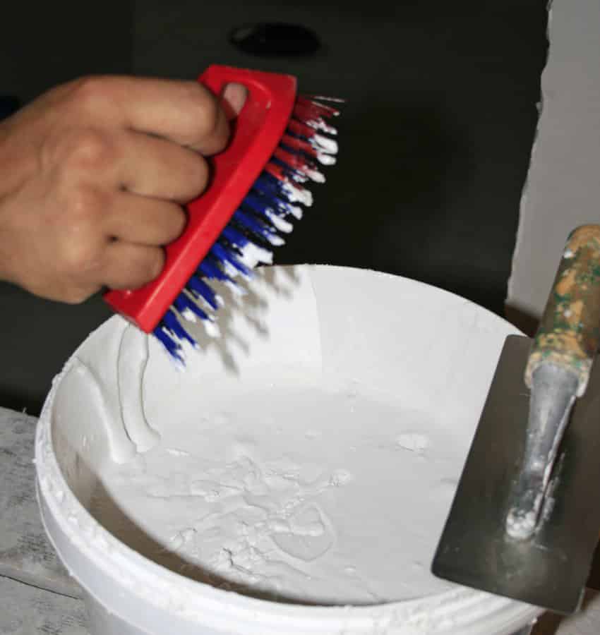 Не так уж и сложно сделать все при помощи щетки. Для этого потребуется щеточка и небольшая деревянная дощечка. Окуните щетку в ведро с раствором для шубы, возле стены переверните ее и проведите по ней на себя дощечкой.