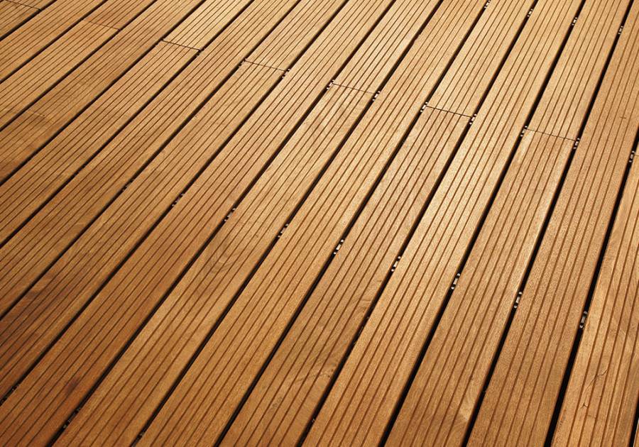 Из лиственницы и хвойников чаще всего изготавливают и материал, имеющий название «палубная» доска. Она не имеет обычного для таких покрытий соединения («замком») в торцах, а, наоборот, крепится так, чтобы между элементами сохранился зазор. Чтобы зазоры были ровными и аккуратными, при укладке пользуются специальными вставками, а потом они убираются. Зазоры необходимы тогда, когда вашему настилу будет нужна вентиляция, или необходимо продумать сток воды.