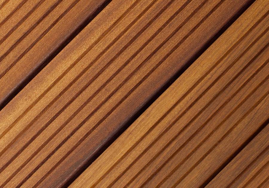 Прочностью и твердостью не уступает доска из мербау. Популярность древесина обрела благодаря коричневому цвету с удивительным оттенком и желтыми вкраплениями из минералов.