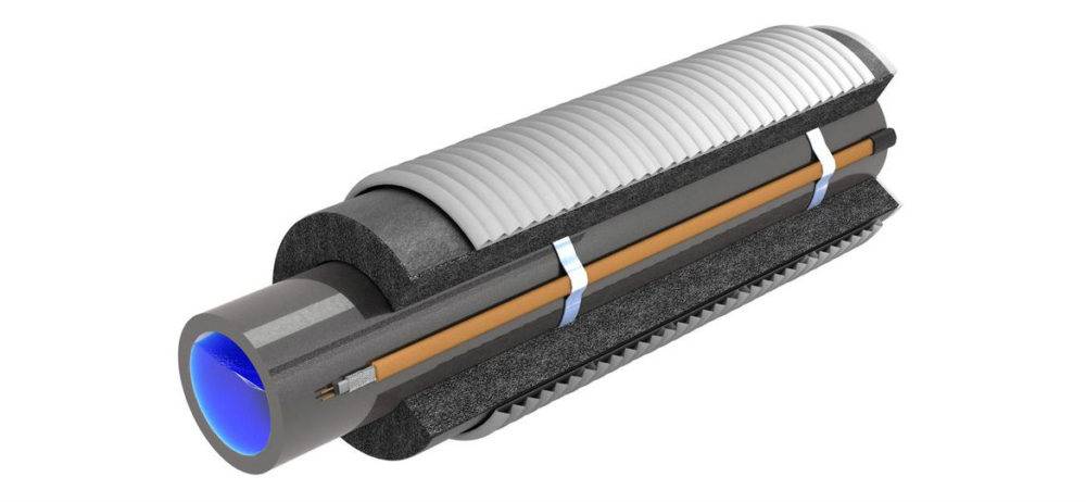 Трубопровод протягивается по траншее с глубиной заложения не менее уровня промерзания грунта. Если это покажется чрезмерным (для Подмосковья этот показатель составляет 1,8 метра), можно установить менее глубокую утепленную магистраль или установить на сливной трубопровод греющий кабель с автоматикой включения при понижении температуры грунта ниже нуля градусов.