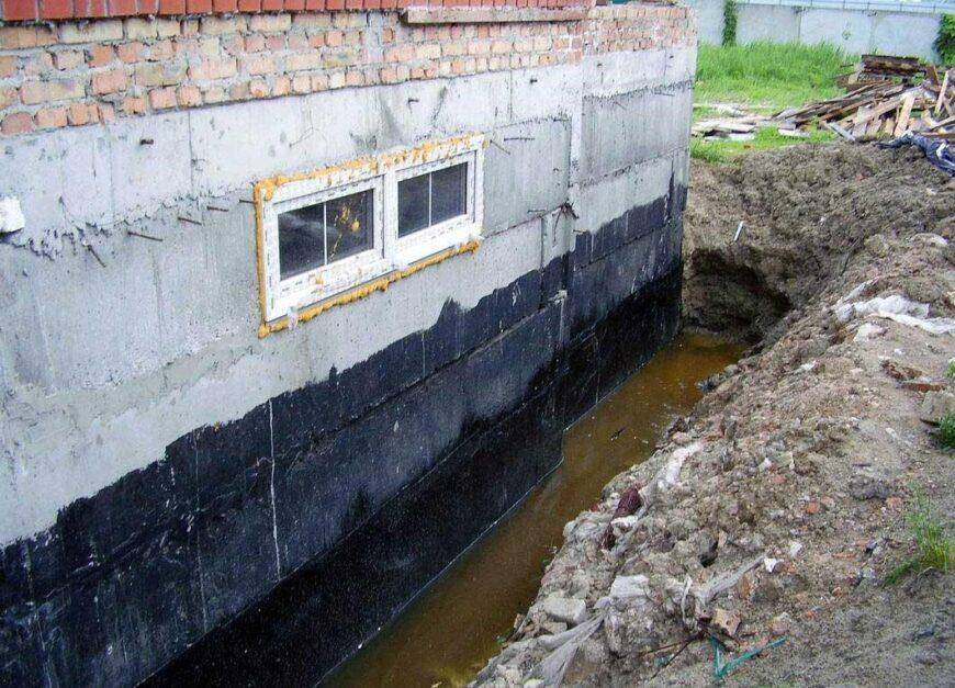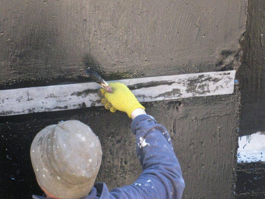 Для обеспечения хорошей гидроизоляции используется битум, которым снаружи прокрашивается фундамент