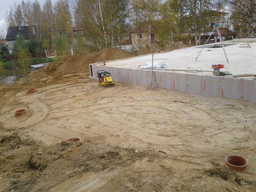 - Установив ряд теплоизоляционного материала осуществляется его засыпка материалом, обеспечивающим эффективный дренаж.