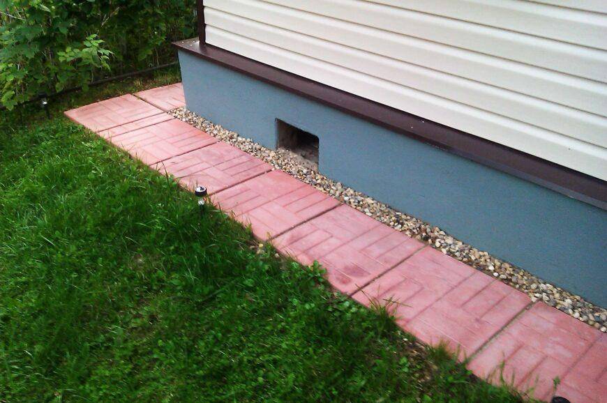 Для эстетической красоты можно сделать отмостки, которые представляют собой водонепроницаемое покрытие (асфальтовая или бетонная полоса), которое проходит по всему периметру здания снаружи. Отмостки защитят здание от паводка и осадков.
