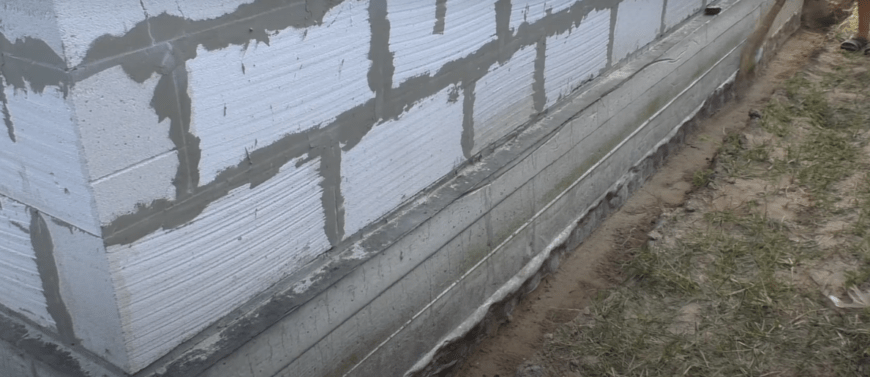 - Для утепления ленточного фундамента заделайте все стыки между блоками.
