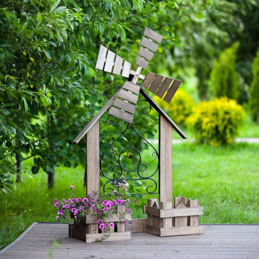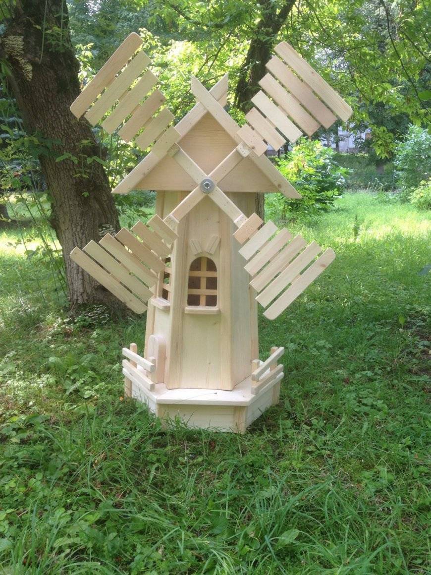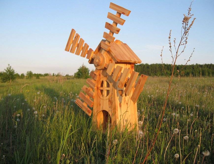 - ветряная мельница – отличное украшение двора или сада. Она подчеркнет особый деревенский стиль, настроит отдыхающего на лирический лад;
