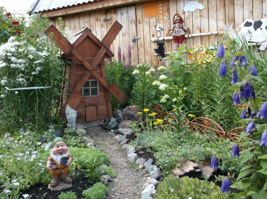 Конечно, такая мельница на дачном участке предназначена совсем не для переработки зерна. Главным мотивом возведения мельницы для сада является украшение дачного участка.