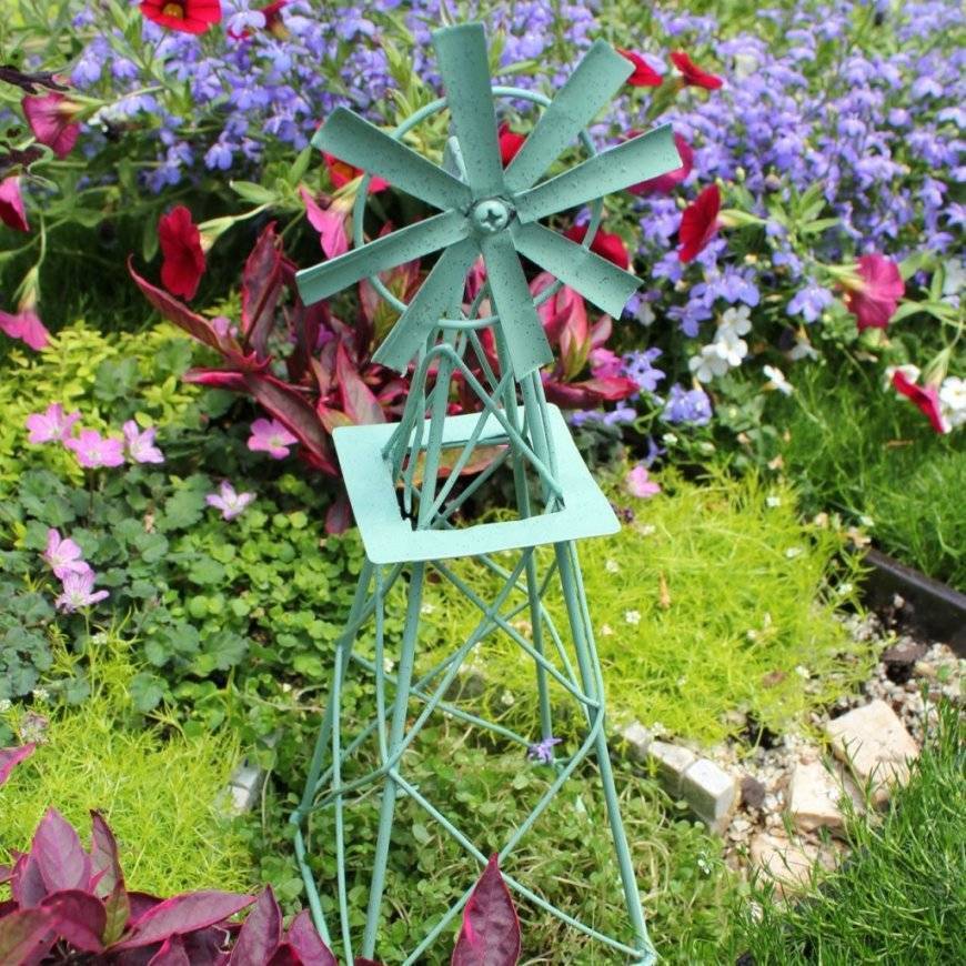 Часто для сада не требуется полноразмерная модель с функционирующими лопастями. Достаточно будет сделать небольшую мини-мельницу, чтобы установить ее в клумбе или рядом с местом отдыха в саду, вместо порядком надоевших пластиковых фигурок зверушек и гномов.