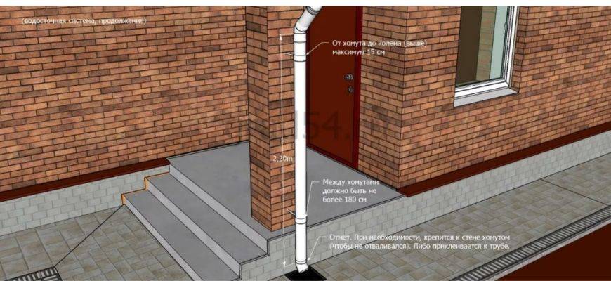 Чем в большем отдалении будет выведена труба водостока, тем меньшее количество вод просочится в почву и горные породы возле строения.