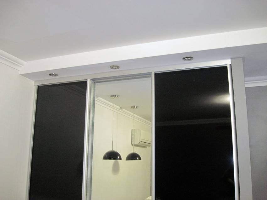| Рис. 11. Идеально встроенный в нишу шкаф купевверху потолок занижен с помощью короба из гипсокартона, внизу нижняя направляющая поднята над полом |