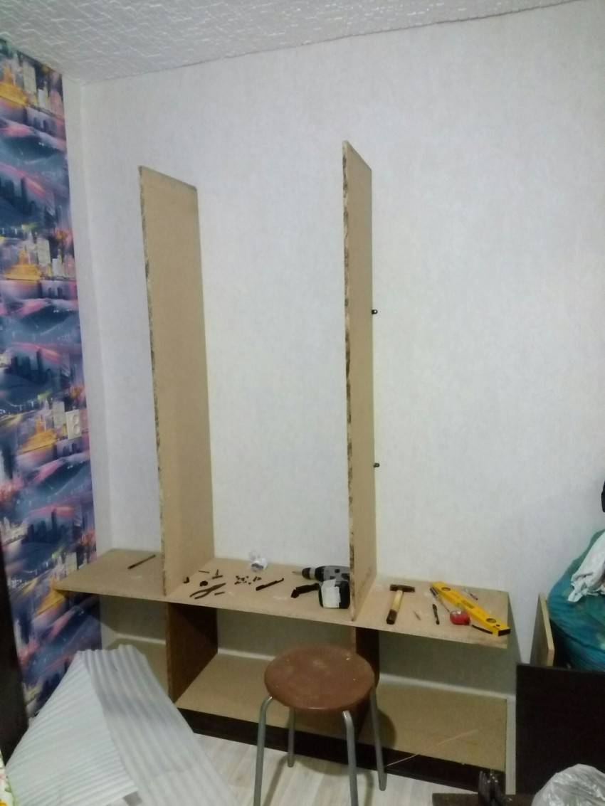 Если для тебя посчастливилось работать с совершенно ровненькой нишей, ты можешь просто вкрутить в нее полки и вставить ящики – шкаф готов. Но если стенки неровные, то все уклоны и недостатки лучше восполнить заблаговременно. Даже незначимый наклон приведет к тому, что створки не будут двигаться.