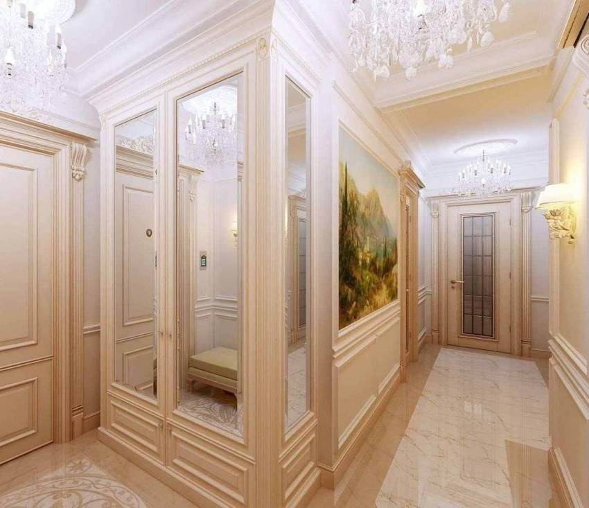 | Рис. 12. Ещё один красивый пример сопряжения потолочного плинтуса и шкафа купе в нише |
