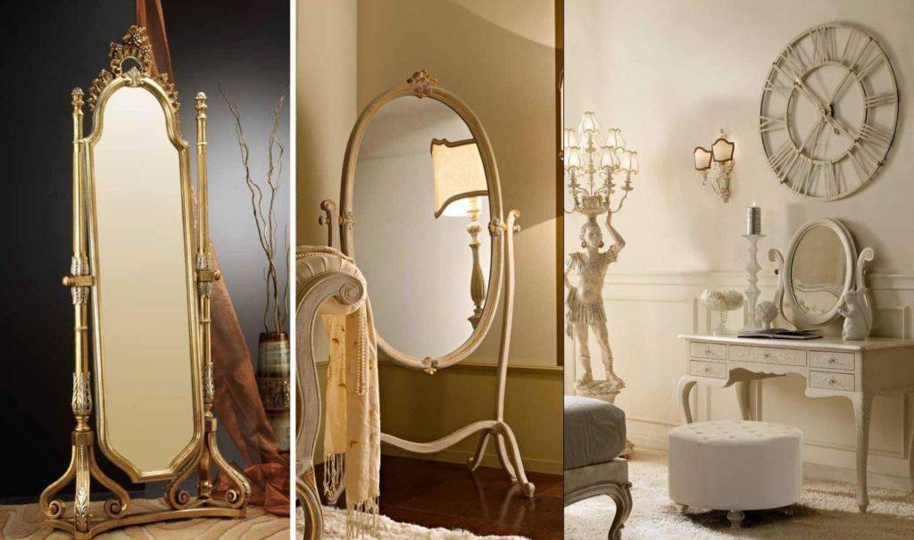 Изначально зеркало-псише использовалось, как настольное, напольные зеркала этой конструкции стали производиться позднее