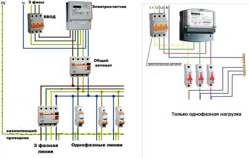 Не стоит думать, что наличие трехфазной техники обязательно. Совсем нет. Просто при подключении мощной техники к трем фазам, ее нагрузка распределяется поровну между всеми тремя фазами. А это значит, что можно использовать провода меньшего сечения и автоматы меньших номиналов (но провода при этом четырех/пяти проводные, и автомат трех-четырех полюсный).