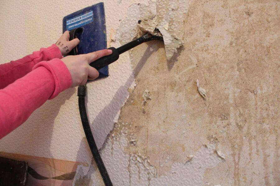 - Попробуйте обработать стену паром, но не сильно горячим и недолго.