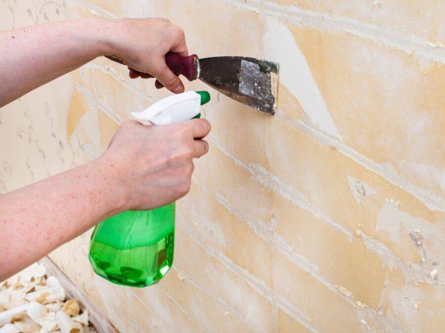 - Используйте недорогой обойный клей, разведенный до густого состояния с добавлением грунтовки, распределенный по поверхности тонким слоем. После набухания аккуратно удаляйте материал, помогая себе шпателем.