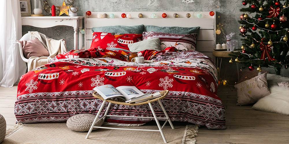 Укройте диваны и кресла нарядными покрывалами, смените наволочки на подушках, сделайте красивую сервировку стола (например, постелите красную скатерть и поставьте несколько подсвечников в виде елочек), поменяйте занавески и тюль. Каждый уголок дома преобразится, стоит только приложить немного усилий.
